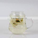 China Manufacturer Wholesale Clear Custom Handle Tea Drinking 450ml Glass Cup With Lid and Infuser