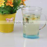 Cheap Price China Factory Wholesale Children Drinking 300ml Clear Borosilicate Flat Glass Cup With Handle