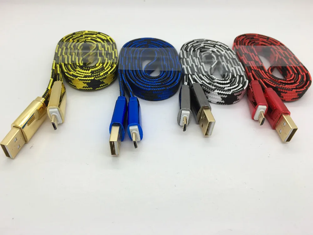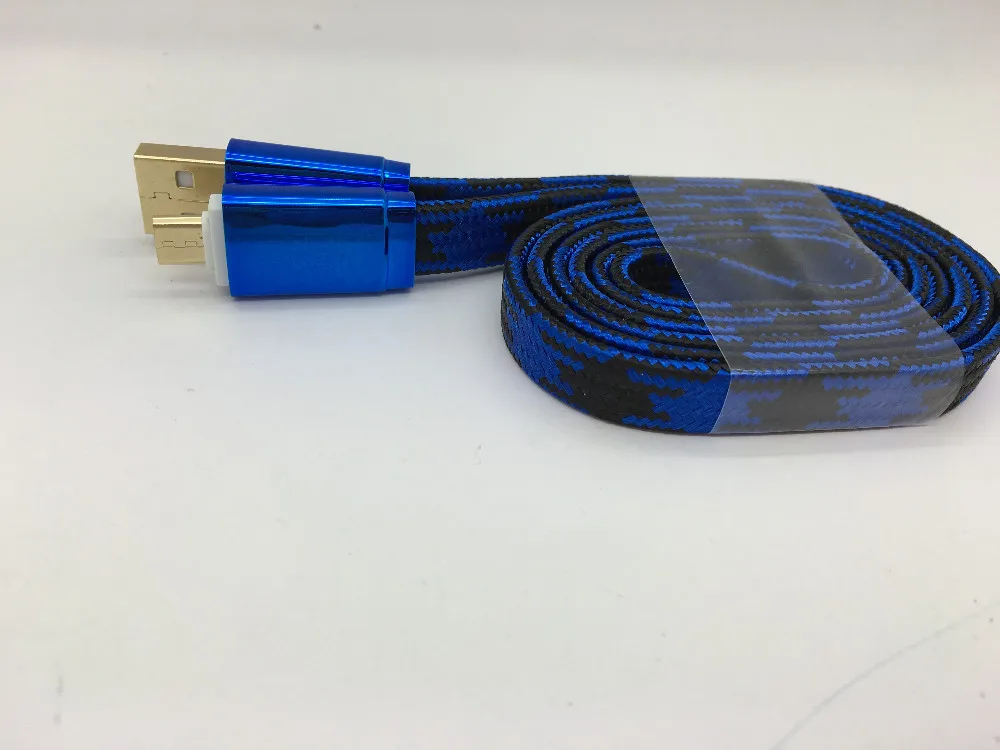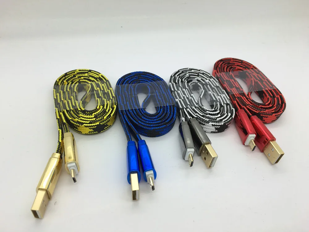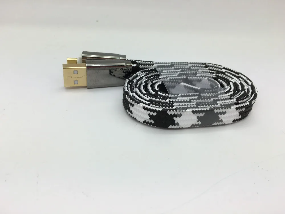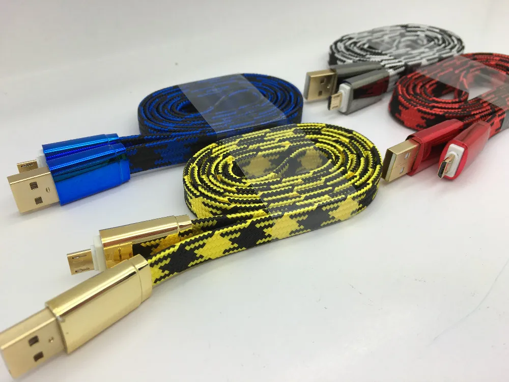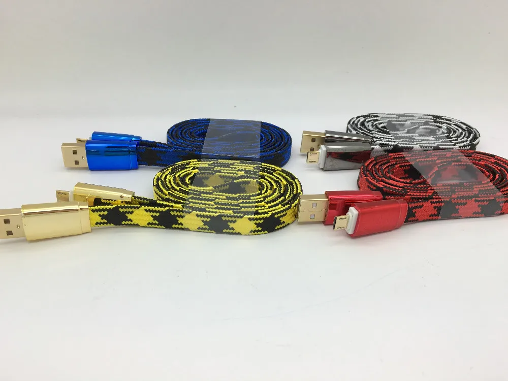 New Gold Plating Soft Zinc Alloy Connector Flat Micro Usb Data Cable