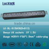 19inch 1.5U UK 8 Ways PDU With CE ROHS