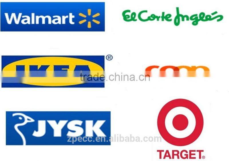 We are a qualified supplier of Wal-mart, Target, JYSK, COOP and El Corte Ingles.