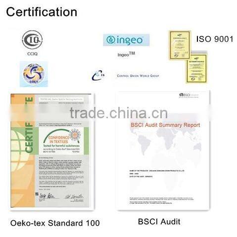 | 5). 60x40/173x120,300TC, 100% cotton, Dobby fabric. | 5). 10% Goose or Duck Down, EN12934 or USA-2000 Standard. |