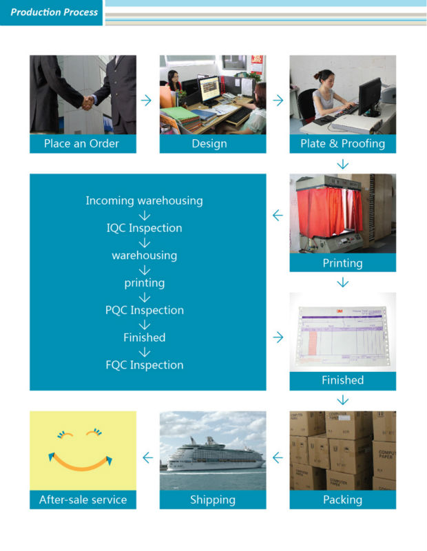 3) Our Company has a team of experienced technical personnel with over 15 years working experience in producing computer printing papers as well as transferable instruments. Rely on advanced production equipment, experienced technical personnel, and mature processing production lines, we guarantee the quality of our products and punctual delivery of the goods.