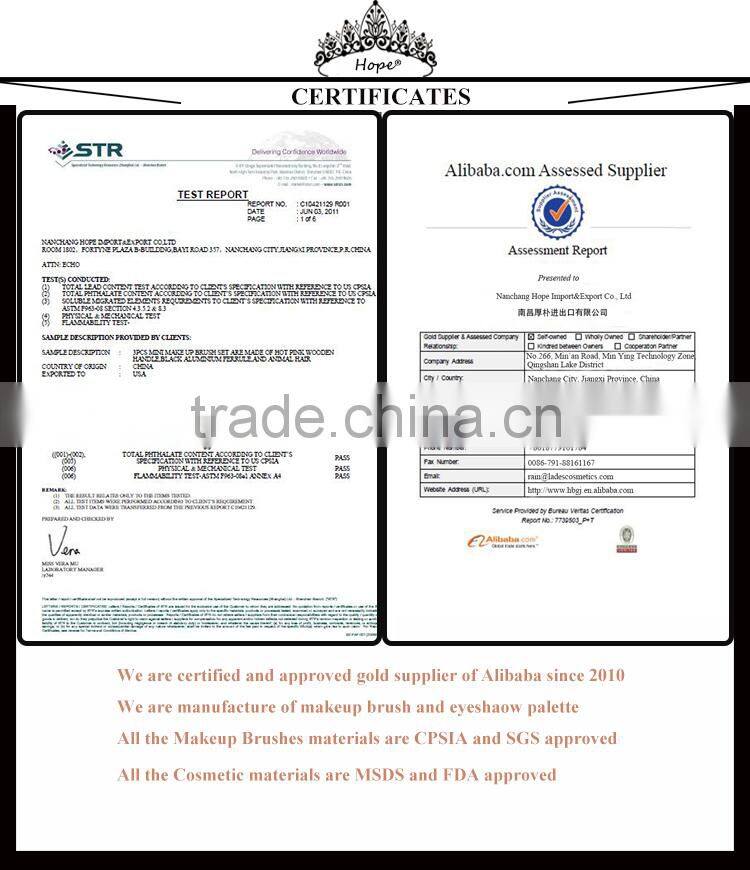 * Adaptations of natrual animal hair, high quality synthetic hair, coated bright metal ferrule and eco-friendly painting wood. Each kind of material and ingredient should be tested by FDA.SGS.CPSIA.