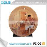 Barrel sauna is different from traditional indoor sauna room, it is large and rounded like barrels, with a door at one "end" of the barrel for entering and exiting the sauna. The barrel sauna room is specially designed for outdoor use so it does not take a room inside the house and give customer more flexibility. We only choose the best Canada pine wood or Canada western red cedar for its strength, stability and long lasting beauty. It is naturally resistant to decay and insect damage.