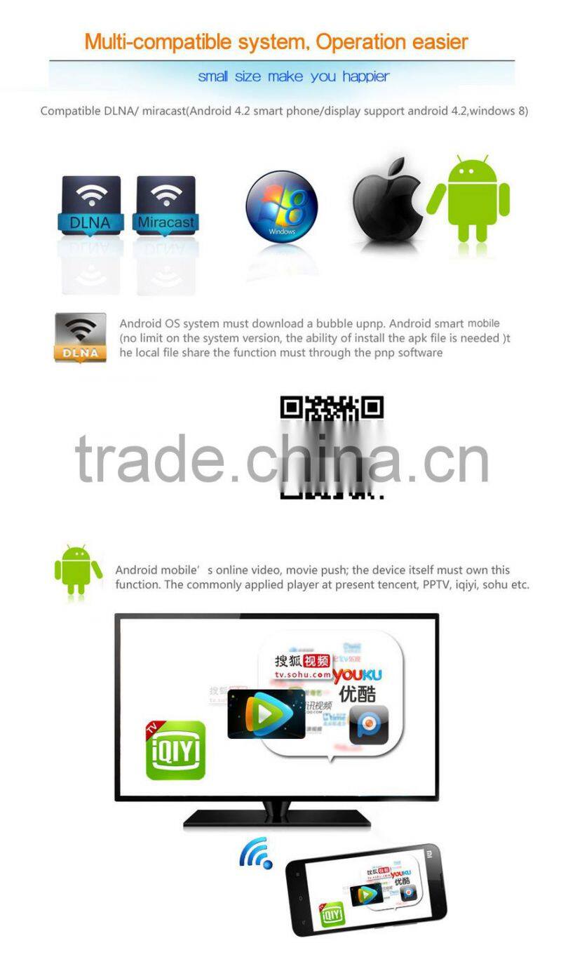 Mini Style Usb Dongle Wifi Display Linux Miracast DLNA Android 4.4 Window 8 Wifi Display Dongle From Smart Phone to HD Smart tv