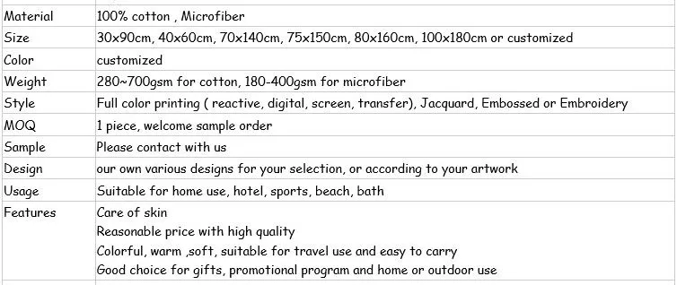 China Factory 100% Cotton Velour Reactive Printed Custom Logo Promotional Beach Towel