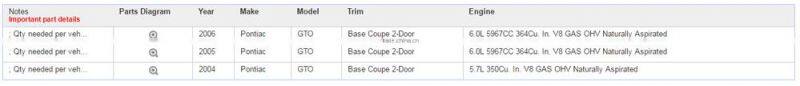 | Car Make | Pontiac | OE NO. | 92143049 | |