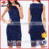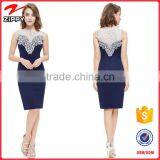 New Arrival Women Evening Wear Sleeveless Navy Blue Bodycon Dress With Lace Trims