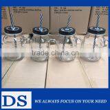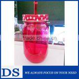 Round Shape Color Painted Glass Mason Jar Without Handle and With Lid & Straw