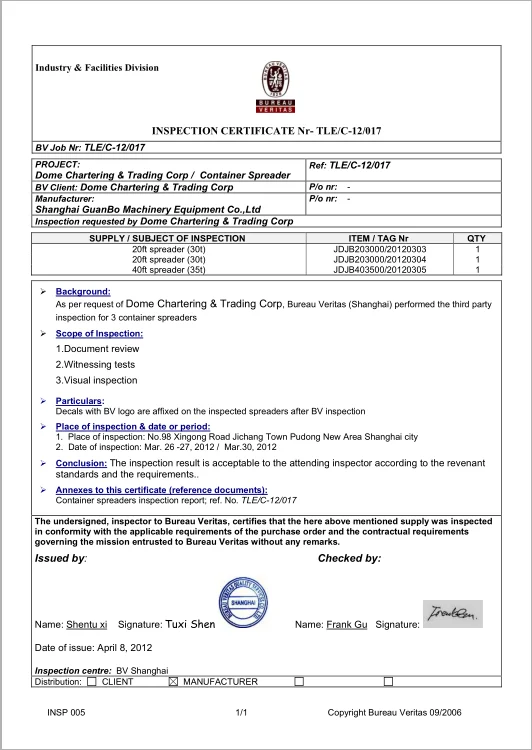 Widely Used ZPMC Quality Low Price 20 Feet and 40 Feet Automatic Rotating Cargo Beam