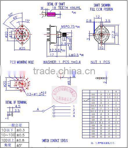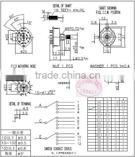 HongYu Rotary Switch 4positions, 6positions,8positions,10positions,12positions