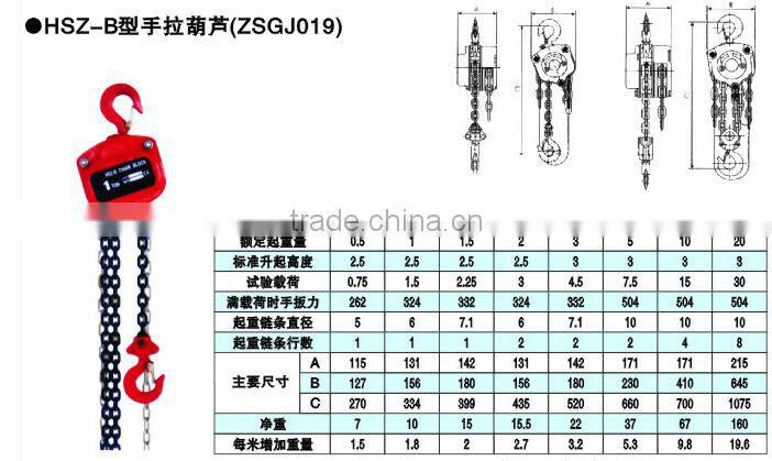| Usage | Construction Hoist | Power Source | Hand Chain | |