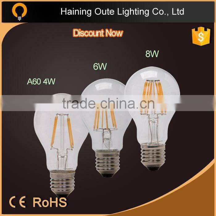 High Quality 2W,4W,6w Filament A60 Led Bulb for Coffee Bar ,hotle Room
