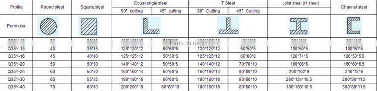 Punching thickness(mm) | 12 | 15 | 16 | 20 | 25 | 26 | 35 |