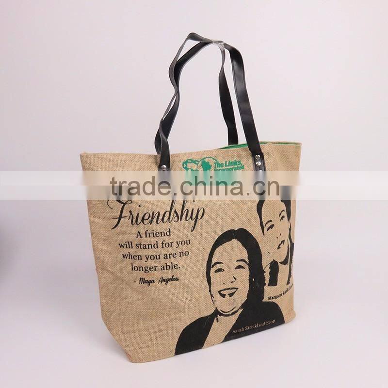 - China Custom Large Tote Bag Eco Friendly Recycle Women Big Jute Beach Shop Bag With Inside Pocket Shop
