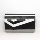 New Ladies Black and White Hard Case Clutch Evening Acrylic