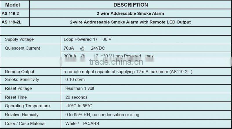 AS119-2L:2-wire Addressable Smoke Alarm with Remote LED Output