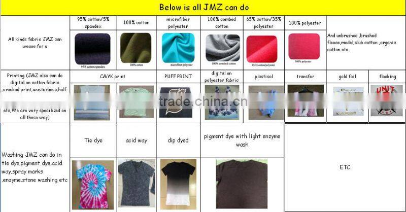 Equipped with the advanced machinery, JMZ Garment Manufacture Pty Ltd. specializes in garment printing. JMZ (founded in 1995) is a leading and professional manufacturer of casual wear, especially for T-shirts & underwear with various prints for men, women and children on the basis of our competitive price, excellent quality and timely delivery, regardless of the size of the order. JMZ owns a group of devoted and professional employees. We are good at high quality printing and fabric production by introducing advanced machines, which make our company qualified to produce Billabong garments (international well-known brand). We have cooperated with Australia chain shops like Tarocash, Yd, Next and Connor for over 10 years, with good partner relationship. Excellent performance has enabled JMZ to develop quickly throughout the world, particularly in the North America, Europe, Australia, South Pacific and Asia. Advantages: 1. Printing factory: German speed-line automatic textile printing machines with twelve colors can produce most printing types including water base print, discharge print, plastisol print, thermoset oil print, foil print, allover print, tie dye, crush, paint and beading, transfer, table print, flocking, non-toxic ink print, screen print and puff print, with the printing capacity of 6000-7000 units per day. All prints are made by using environmentally-friendly and high quality materials. 2. Fabric Mill: We introduce high-technology weaving machinery from Japan and Germany, which can produce high quality fabric including jacquard, pique fabric, yarn-dyed fabric, ribbed fabric, fleece and jersey. Fabric can be supplied according to customers' requirements. We have passed SGS and Oeko-tex standard of 100 tests (PH, cadmium content, free of phthalates, non-toxic inks). 3. Dye-works: All our contracted dye works have high and low temperature dyed machines, equipped with German stabilized machines that can control the shrinkage within 5% and we can produce high color fastness of water, perspiration and attrition. 4. Embroidery: There are eighteen Japanese Tajima computer-controlled automatic embroidery machines with eighteen heads and twelve colors per head in our embroidery factory. 5. Sewing machines: Applying new Japanese Brother sewing machines and skillfully experienced staff members. 6. Merchandiser departments: we have an integrated follow-up system and all our merchandisers are skilled and experienced, having a good communication with designers in collection or bulk. 7. MOQ: Accept OEM and ODM orders regardless of big or small ones.