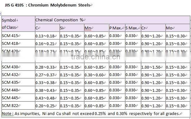 Cr-Mo Steel | Mechanism & Fasteners gear Stressed components for vehicles Engines and machines Parts of larger cross-section |