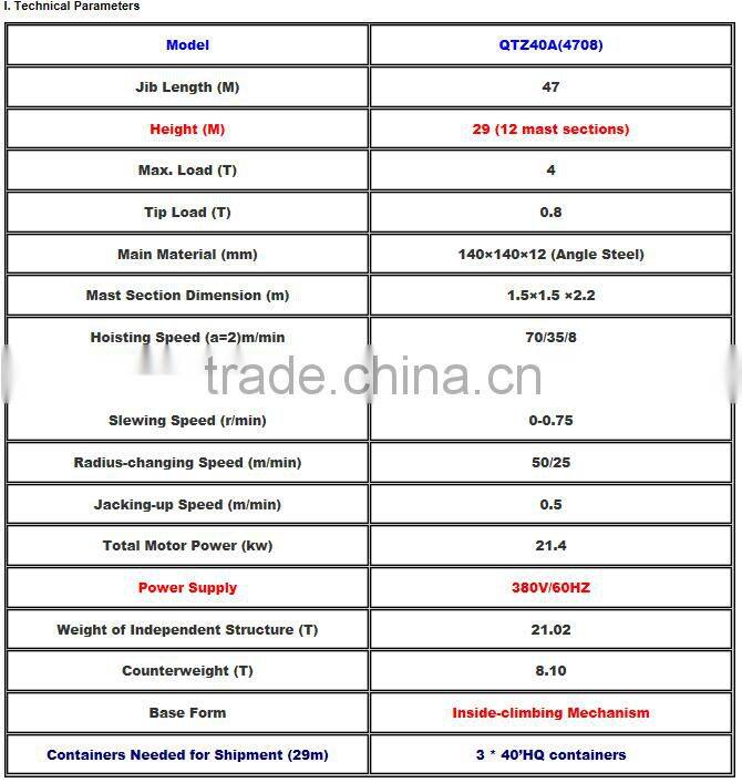 | Max. Lifting Load | 4t | Max. Lifting Height | 47m | |