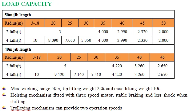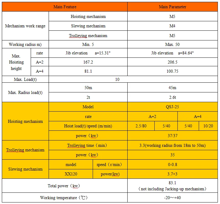 | Max. Lifting Load | 1-10t | Max. Lifting Height | 120m/120m/150m/150m/150m | |