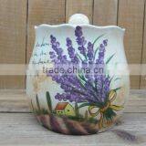 Kitchen Storage Type Lavander Handpainted Ceramic Sugar Jar With Spoon