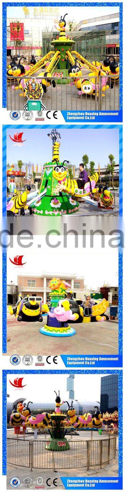 The interesting bee rides device is a kind of controlled aircraft amusement equipment.It rotates around the vertical axis. Passengers can independently control the movements of small bees.At the same time they can regard the small bees’ front of them as enemy aircraft and shoot them down. Beesrides which shot down can also rise when they get the minimize position.