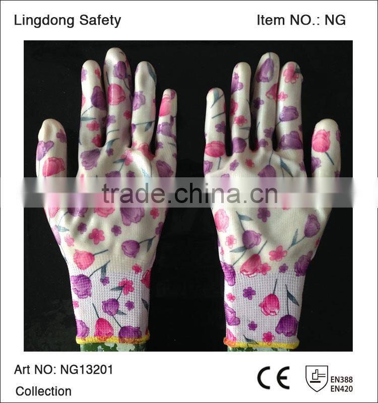 Women's Flower Colored Nylon Nitrile Garden Gloves