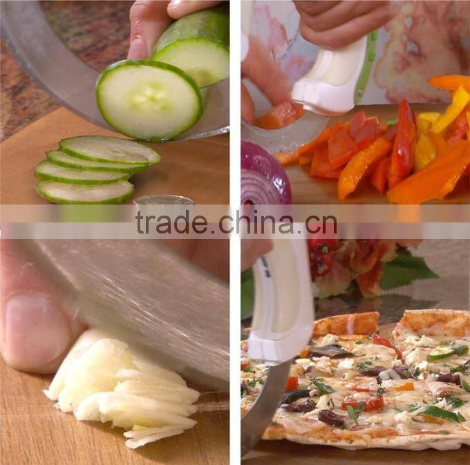 the Rolling knife cuts your food on the FIRST roll of the blade, each and every time!