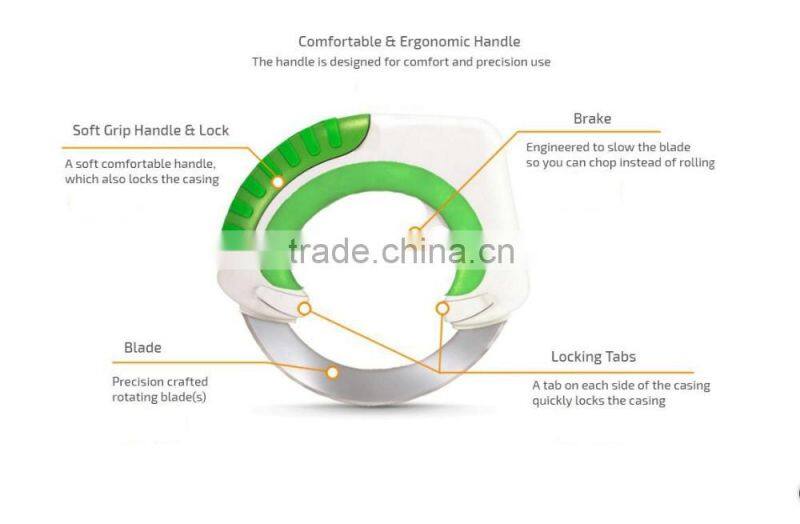 Rolling Knife works for you Faster and easier then other ordinary knives. It can tackle many of the task then normal knives. precise cutting is one of the fundamental tasks as well as chopping on the other hand. Well, It works as chopper when you need; by holding blade break. Rolling Knife has extra facility to cut through pastry dough, but you can cut meat as well. Cleaning/Washing of Rolling Knife is simple enough by just after removing the bolt; take out the blade wash it and dry it. So called it dish washer safe.