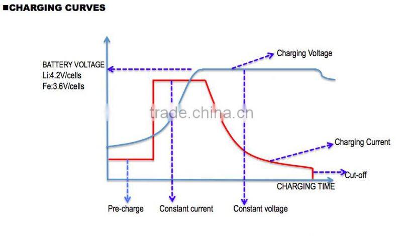 - Small current pr-charge and constant big charging current for faster charging, optimized for battery pack`s cycle life