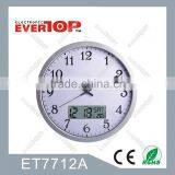 Hot-Sale Old Fashion Plastic Wall Clock With Analog & LCD Dual Display ET7712A