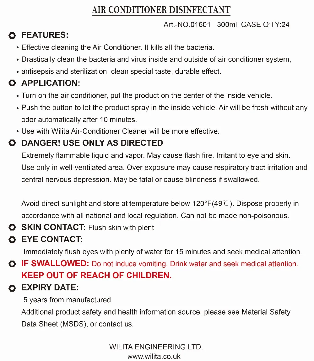 Home > Products > Others > WILITA Auto Air Conditioning Air Conditioner Cleaner Spray and Disinfectant for Car Odor Remover