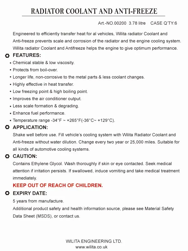 WILITA Best Engine Coolant Brands Radiator Coolant Leakage Recovery Function