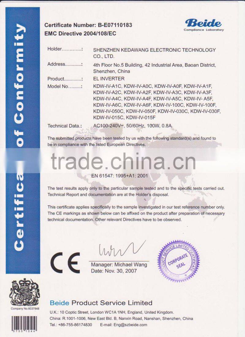 Certificate  | CE, LVD,EMC, RoHS, SEDEX  |