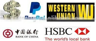 Western Union, Paypal ,T/T (30%deposit, 70% before shipment after presentation of ready cargo)