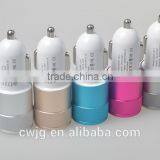 Metal Aluminum 2.1A Dual USB Car Charger,Mini Bullet USB Car Charger For Mobile Phone