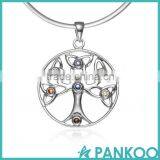 925 Sterling Silver High Quality Colorful Cubic Zirconia Celtic Knot Trinty Tree of Life Pendant Necklace