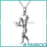 925 Sterling Silver Muscle Man Bodybuilder Biceps Flex Sports Pendant Necklace