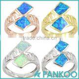 Wholesale Fashion Open Two Gems Blue Opal Sterling Silver Wedding Ring