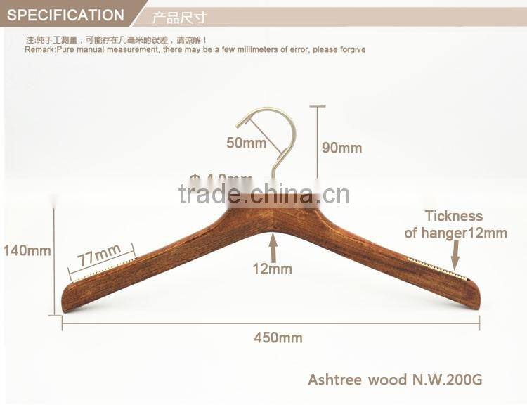 Antique Color Ashtree Wooden Hanger With Anti-slip Strip in the Shoulder