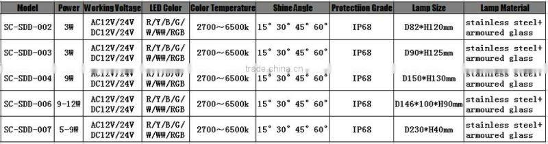 12V /24V IP68 Led 9W/12W Underwater Light Led Pool Light Swimming