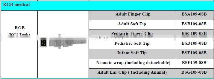 RGB Medical Reusable SpO2 Sensor Pediatric Silicon Soft Tip, Compatible With RGB (BCI Tech), 0.9m, BCI Tech, 9pin