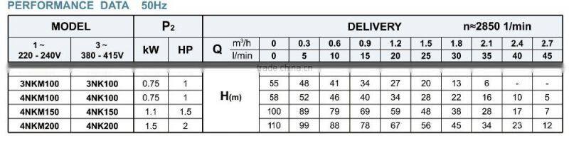 Junior Submersible Deep Well Water Pump 4NK200 2HP 1.5KW