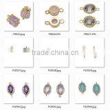 Wholesale Jewelry 21.7*17mm Round Silver Plating Various Color Bezel Connector Gemstone Accessories