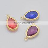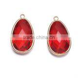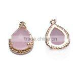 18.6*11.6mm Gold Plated Insert Pink Teardrop Shape Glass Jewelry Bezel Set Gemstone Pendant
