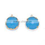 Gold Plated Insert Blue Round Glass Bezel Set Charms Pendant