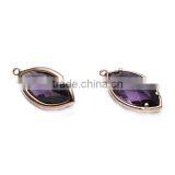 19.4*8.7mm Gold Plated Insert Marquise Shape Purple Glass Handmade Small Jewelry Bezel Set Pendant