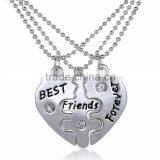 3pcs BFF Best Friend Forever Love Break Heart Pendent Friendship Necklace Gift